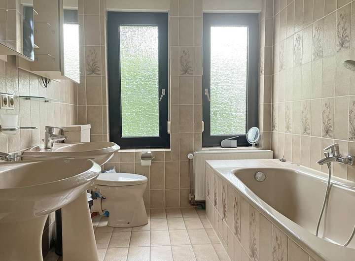 Im Zuge der laufenden Instandhaltung wurde ca. 2009 die Fassade gedämmt, verputzt und weiß gestrichen. Die isolierverglasten Fenster sind in Kunststoff gefasst, diese wurden erneuert und sind teilweise dreifach verglast. Im Jahre 2013 wurden die Wasserleitungen sowie die Elektrik erneuert und neue Heizkörper eingebaut. Die Holzdielen in dem Haus wurden aufgearbeitet und erstrahlen in neuem Glanz. Auch die Türen und die Zargen wurden erneuert. Das WC im Dachgeschoss wurde ca. 2020 mit weißen Sanitärobjekten ausgestattet und mit großformatigen Fliesen versehen. Die Küche ist mit einer modernen Einbauzeile mit glänzenden roten Fronten ausgestattet und bietet neben einem Gasherd alle erforderlichen E-Geräte. Die Küche und das Esszimmer erhielten einen neuen Bodenbelag mit hellen Granitfliesen. Lediglich das Tageslichtvollbad mit zwei Waschtischen stammt noch aus den Achtzigerjahren und verfügt über bahamabeige Sanitärausstattungen sowie Wand- und Bodenfliesen im gleichen Stil. Die Beheizung und die Warmwasserbereitung erfolgen über eine Gaszentralheizung aus dem Jahr 2013. Der Teilkeller besteht aus einem Raum und bietet genügend Abstellfläche.