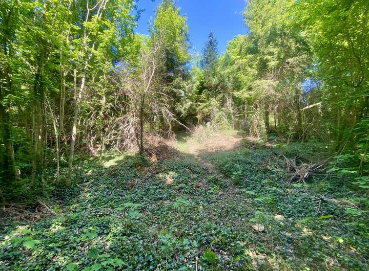 • Hanglage mit altem Bewuchs und kleinem verfallenen Gebäude (Altöltanks bereits entsorgt)