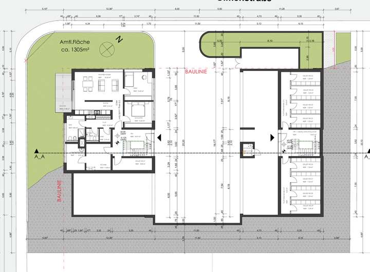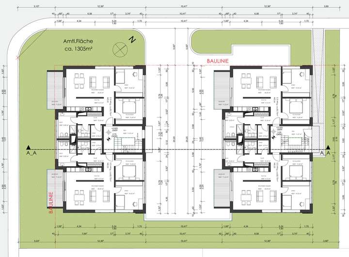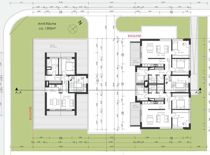 **Baugrundstück mit Baugenehmigung für 2 KfW-55-Mehrfamilienwohnhäuser mit insgesamt 9 Wohnungen**