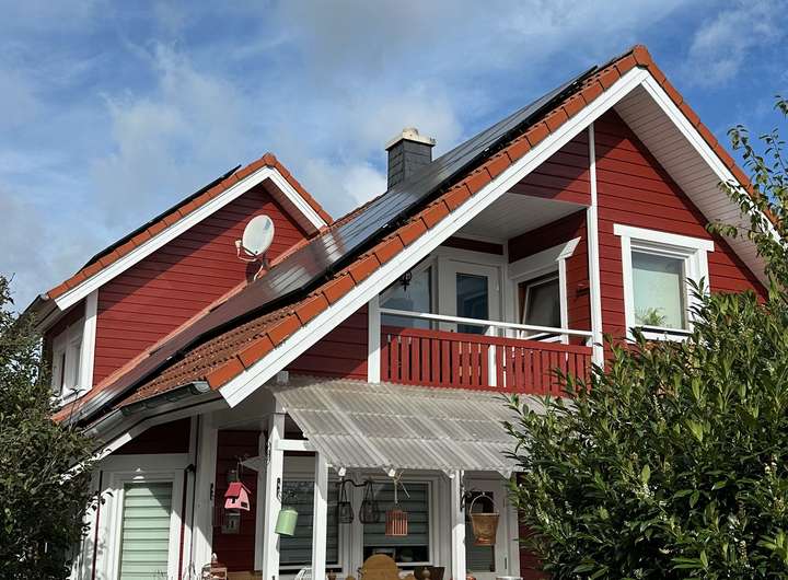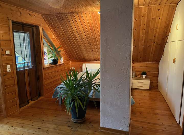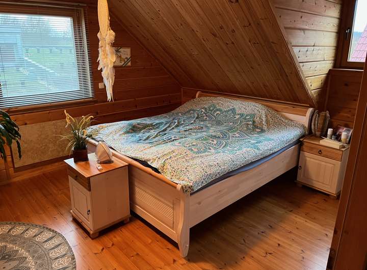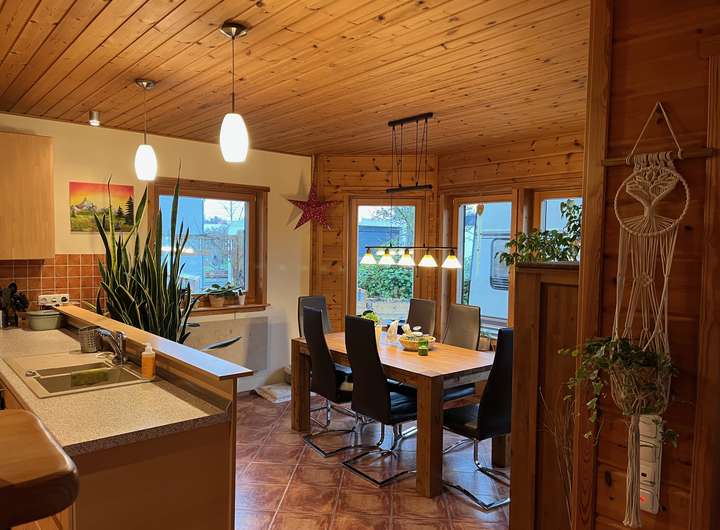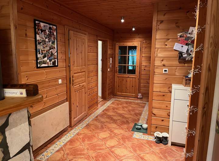 Das Haus wurde 2007 mit finnischer Polarkiefer gebaut. Die Sandwichbauweise mit Dämmkern liefert eine optimale Wärmedämmung mit tollem Raumklima. Es gibt keinen anderen vergleichbaren Baustoff mit ähnlichen positiven Eigenschaften. Das Holz atmet, lebt, wirkt Temperatur ausgleichend und steht für eine erstklassige Ökobilanz. Das Haus verfügt über eine Wärme-Strahl-Heizung in Form von Marmorplatten (strombetrieben), die ohne Staubaufwirbelungen eine für den Menschen sehr angenehme Strahlungswärme in den Raum abgibt.