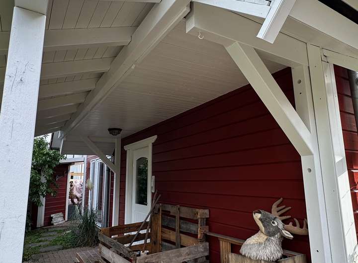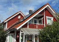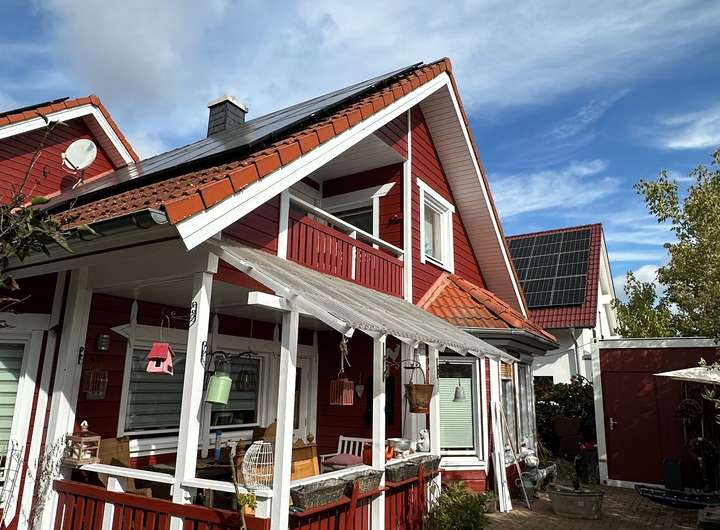 Wir vermieten unser freistehendes, top gepflegtes "Lapponia" Holzhaus in frisch gestrichenem schwedenrot mit Garten.