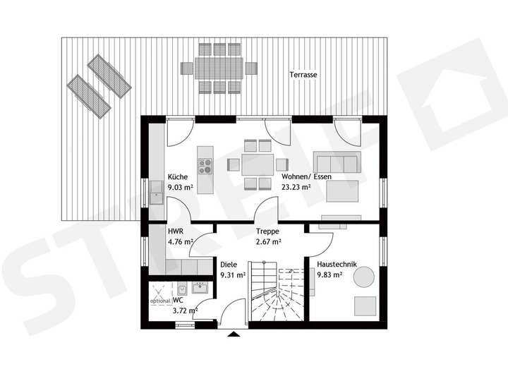 Hausmaße: 9,33 x 8,08 m Änderung möglich