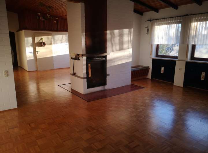 Zudem gibt es einen offenen Kamin mit Glastüren der vom Wohnzimmer und Esszimmer einsehbar ist und für ein behagliches Wohngefühl sorgt. Ein echter Hingucker.