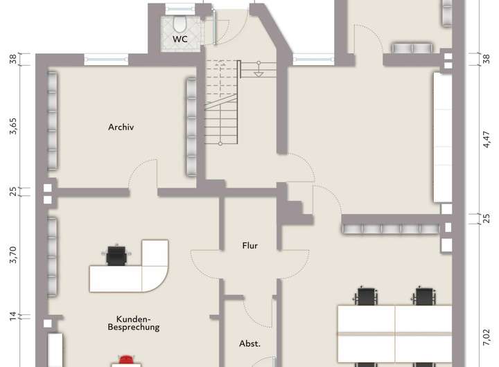 Erdgeschoss: ca. 142 m² Gewerbefläche (2 Ladenlokale)