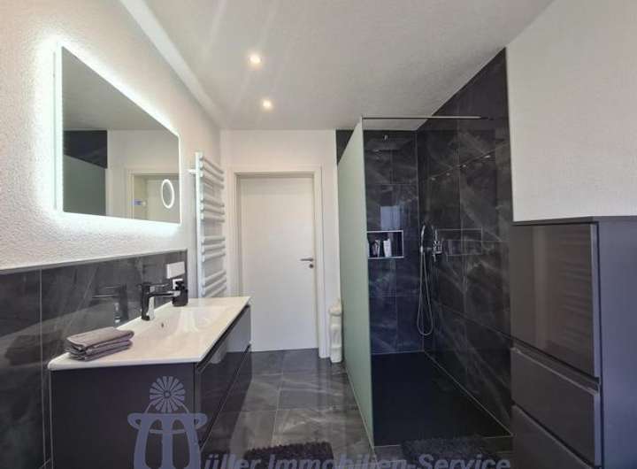 Im Jahr 2000 wurde die Wohnung im EG, im Jahr 2020 die Wohnung im EG in hellem modernem Stil umfangreich modernisiert; Anfang 1925 wurde auf der EG-Etage ein helles modernes Bad mit bodengleicher Dusche, großer Eckwanne, WC, Waschbecken, Handtuchheizkörper und großformatigen anthrazitfarbenen Feinsteinzeugfliesen eingebaut.