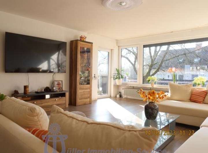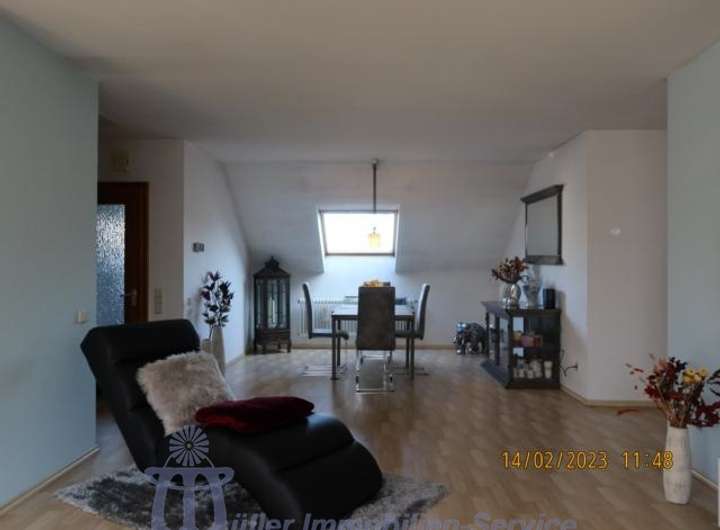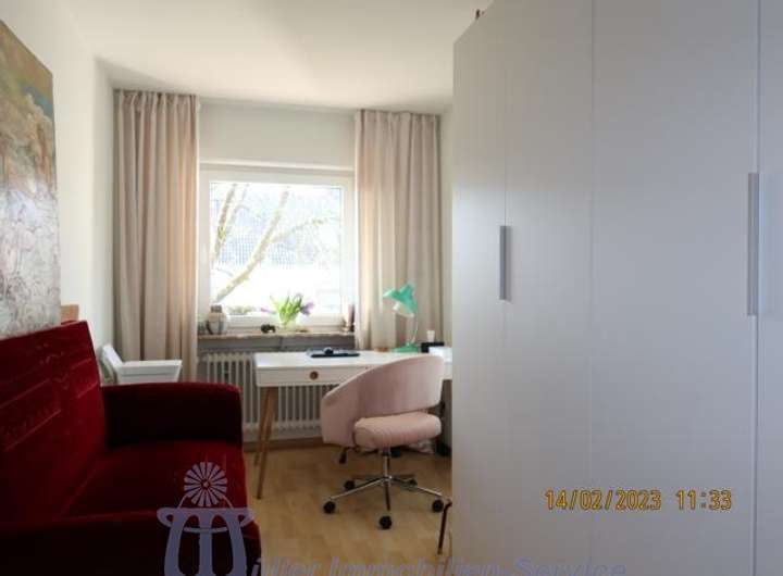 Die Wohnung im Obergeschoß hat eine Wohnfläche von ca. 117 m², die sich auf das ca. 44 m² große Wohn-Esszimmer, eine Küche mit moderner Einbauküche, 3 große Schlafzimmer, ein neuwertiges Bad und ein Gäste-WC verteilen.