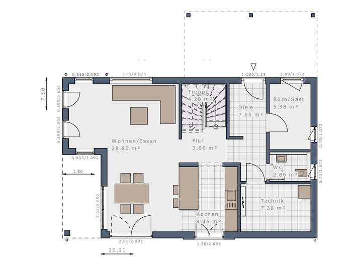 Anbauteile, Carport, Garage und Keller können Extras sein, die als Sonderausstattung angeboten werden. Abbildungen, Grundrisse und Flächenangaben sind beispielhaft und können Extras zeigen. Flächenangaben nach DIN 277.