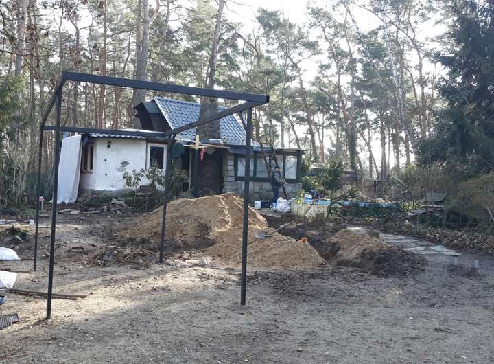 Das gesamte Grundstück hat eine Gesamtfläche von ca 770 qm. und einem Bestandsgebäude von ca 60 qm