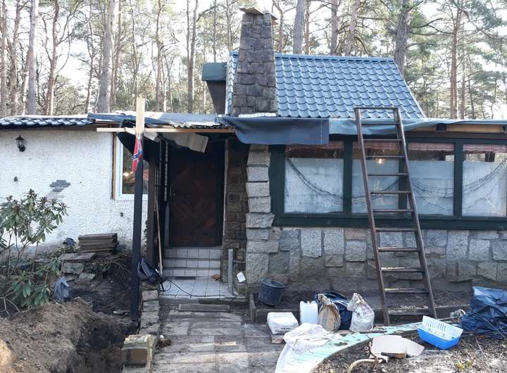 Das nostalgische Wochenendhäuschen aus den 80 ziger Jahren verfügt über 4 Räume , einen Vorraum / Diele mit Zugang zum Wohnbereich und zum Schlafzimmer bzw. das Badezimmer Über eine Leiter im Außenbereich gelangt man in das Dachgeschoss welches als zusätzliches Gästezimmer ausgebaut wurde. Hinzu kommt der imposante Kamin und der Pool im Außenbereich als besondere Merkmale.