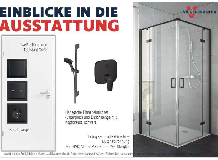 Die schön geschnittenen 2- bis 4-Zimmerwohnungen punkten mit ihren großzügigen Wohnflächen zwischen ca. 64 und knapp 111 m² sowie vielen durchdachten Details. Wer uns kennt, weiß: Bei VILGERTSHOFER setzen wir auf bewährte Qualität namhafter Hersteller wie z.B.: Busch-Jaeger, Hansgrohe, Villeroy&Boch, Internorm, Gira uvm. Die Wohnungen sind mit geöltem Eiche-Parkett, die Bäder mit eleganten Großformat-Fliesen ausgestattet. Die offenen Wohn-, Ess- und Kochbereiche zeichnen sich durch optimale Einrichtungsmöglichkeiten bei gleichzeitiger Funktionalität aus, so dass Behaglichkeit & Komfort garantiert sind. Personen mit Einschränkungen in der Mobilität verfügen in den Erdgeschosswohnungen über ausreichend Bewegungsflächen, da die Grundrisse nach den Anforderungen der Barrierefreiheit geplant wurden. Selbstverständlich führt ein Aufzug vom Keller- bis ins Dachgeschoss, so dass alle Wohnungen auch im Alter, oder aber mit Kinderwägen und Einkäufen bequem erreichbar sind.