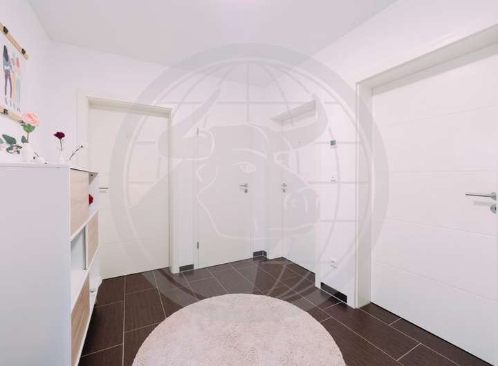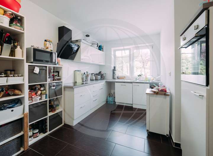 Die Einbauküche ist mit modernen Elektrogeräten ausgestattet und fügt sich perfekt in das Gesamtbild ein. Sämtliche Fenster verfügen über eine doppelisolierte Verglasung, elektrische Rollläden und teilweise integrierte Fliegengitter. Für eine gleichmäßige und angenehme Wärme sorgt eine moderne Gasheizung in Kombination mit einer Fußbodenheizung.