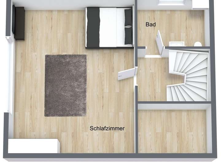 Der ausgebaute Spitzboden erweitert den Wohnraum um ein weiteres Zimmer, ideal als Studio, Hobbyraum oder gemütliche Rückzugsoase. Auch hier befindet sich ein ergänzendes WC, ein Pluspunkt für Komfort und Flexibilität.