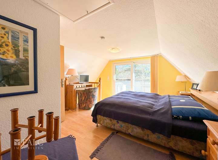 Bei dieser Immobilie handelt es sich um ein frei stehendes, reetgedecktes Einfamilienhaus mit einer Einliegerwohnung. Diese gesamte Wohnfläche beträgt ca. 125 m² und verteilt sich in der Hauptwohnung auf ca. 70 m² und auf ca. 55 m² in der Einliegerwohnung. Beide Wohneinheiten verfügen über ein Erdgeschoß und ein ausgebautes Dachgeschoß. Die Raumaufteilungen und Größen können Sie gerne in den Grundrissen einsehen, die dem Exposé beigefügt sind. Das Grundstück hat eine Größe von ca. 499 m².