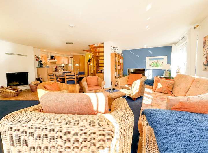 Abgesehen von der wirklich sehr seltenen Lage, ist diese Immobilie zudem in einem sehr gepflegten und liebevoll gestalteten Zustand. Wohlfühlen wird einem hier, zu jeder Jahreszeit, sehr leicht gemacht. Durch die großzügige und offen gehaltene Raumgestaltung werden die Wohnräume der Hauptwohnung angenehm hell mit Tageslicht durchflutet, der gesamte Wohnbereich befindet sich im Erdgeschoss, sodass hier das alltägliche miteinander optimal verbunden werden kann, ergänzt um den direkten Zugang zum pflegeleicht grün angelegten Außenbereich in sonnig südlicher Ausrichtung. Gemeinsame Zeit verbringen, ist hier Qualitätszeit und Freude gleichermaßen und wird an kühleren Tagen durch den Kamin mit einer besonderen Atmosphäre und wohliger Wärme unterstützt. . Der Schlafbereich im Obergeschoss ist ebenfalls angenehm großzügig und hell gestaltet und mit dem Badezimmer en suite ist jeglicher Komfort vorhanden. Ein besonderes Highlight ist der ca. 18 m² große Balkon in sonnig südlicher Ausrichtung, der wie geschaffen dafür ist, den morgendlichen Kaffee, oder das gemeinsame Frühstück dort in Ruhe und in atemberaubend schönen Ambiente, mit dem Rauschen der Ostsee im Hintergrund, zu genießen. Die Einliegerwohnung bietet darüber hinaus einen vollumfänglich ausgestatteten, separaten Bereich für Besuche der Familie, von Gästen und Freunden.