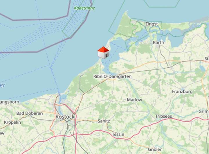 Entfernungen: Dierhagen ca. 3 km, Ahrenshoop ca. 7 km, Ribnitz-Damgarten ca. 13 km, Graal-Müritz ca. 18 km, Prerow ca. 25 km, Rostock Stadtmitte ca. 33 km, Stralsund ca. 50 km, Flughafen Rostock-Laage ca. 58 km, Greifswald ca. 90 km, Binz auf Rügen ca. 100 km, Hamburg ca. 215 km, Berlin ca. 250 km.