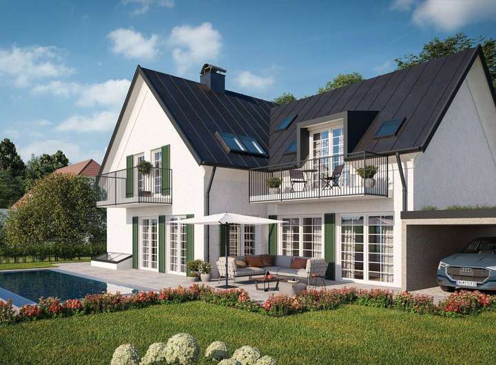 Auf dem Grundstück wurde von einem namhaften Salzburger Architekten eine zeitlose, zweigeschossige Neubauvilla mit großzüfiger Unterkellerung entworfen und zur Baureife gebracht. Die oberirdische Wohnfläche beträgt über 200 m2 zuzüglich einem über 120 m2 großen Kellergeschoss, das für einen Vollausbau (Fitness, Wellness, Weinkeller) konzipiert ist.