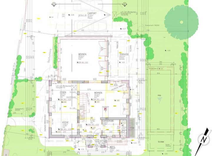 Ebenso verfügt das geplante Haus über ein geräumiges Doppel-Carport und ist die Situierung eines großen Swimmingpools (siehe Visualisierung) möglich.