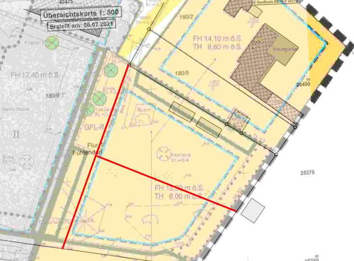 - Grundstück liegt ca.100 m südlich von der Hauptstraße entfernt (3. Reihe)