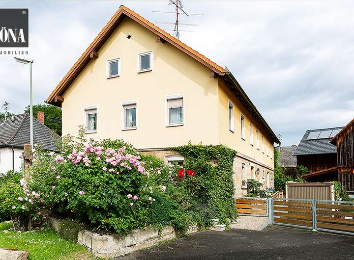 Das im Jahre um ca. 1883 erbaute Bauernhaus (auch als Zweifamilienhaus nutzbar), wurde in den letzten Jahren laufend hochwertig renoviert. Kernsanierung im Erdgeschoss und der Energieanlagen erfolgte in 2014. Es wurde viel Wert auf modernes Design und Qualität gelegt. Die Wohnfläche verteilt sich im Erdgeschoss auf ein Wohnzimmer, eine gemütliche Wohnküche mit Essbereich, ein modernes Badezimmer mit Wanne und ebenerdiger Dusche, ein Schlafzimmer, ein Abstell- Hauswirtschaftsraum, ein Gäste WC, mehrere Zugänge zur Terrasse, Hof und Garten. Der romantische Garten mit seinem Baumbestand, historischen Merkmalen (Säulen etc.) und einer überdachten Pergula und weiteren Freisitzen lädt zum Verweilen und entspannen ein. Im Obergeschoss befinden sich noch weitere sieben Zimmer und ein WC. Diese Räumlichkeiten sind in einem bewohnbaren Zustand mit Renovierungsbedarf.