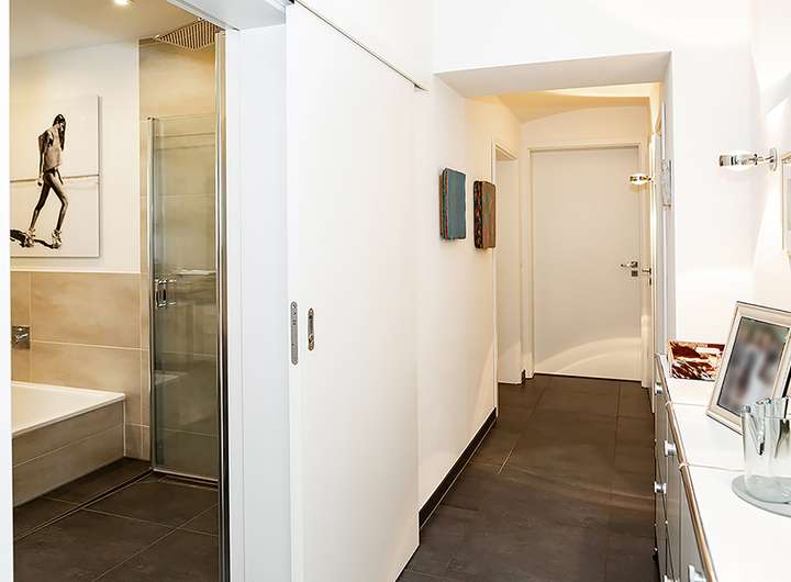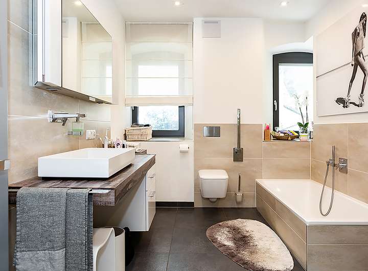 - Modernes Design im Badezimmer mit Wanne und ebenerdiger