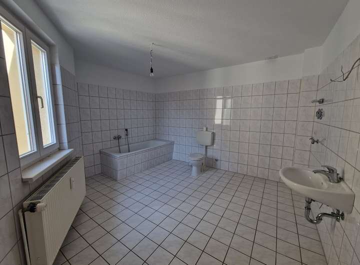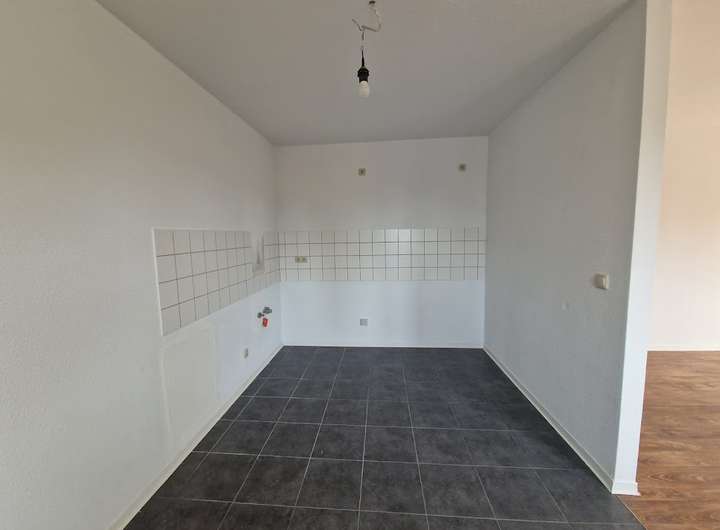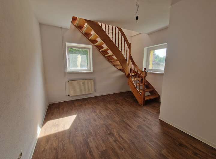 - PVC- Bodenbelag und Raufasertapete in den Wohnräumen