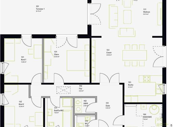 Dieses wunderschöne Comfortstyle 13.03W von massahaus ist nicht nur ein echtes Energiesparwunder. Es bietet mit seinen luftigen 135 m² jeglichen Wohnkomfort für Sie und Ihre Familie.