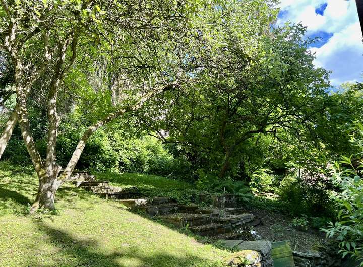 Das Grundstück hat eine leichte Hanglage; der Höhenunterschied beträgt etwa 4 Meter.
