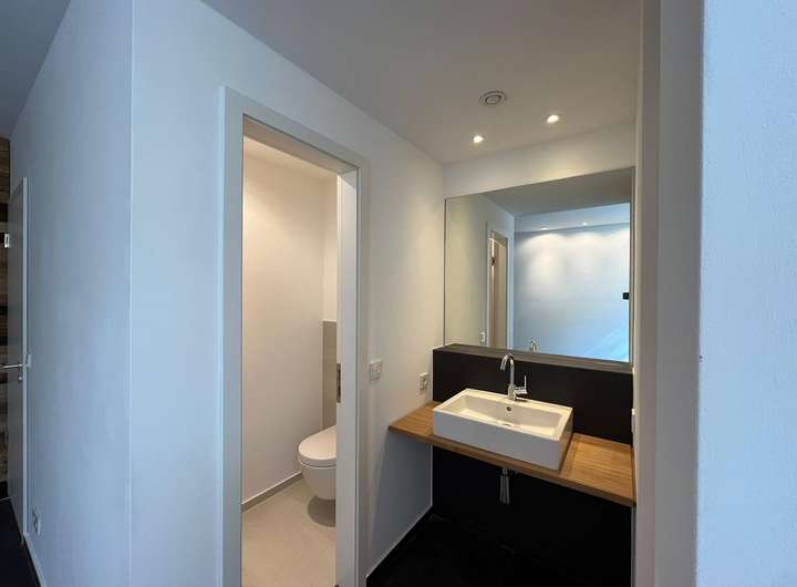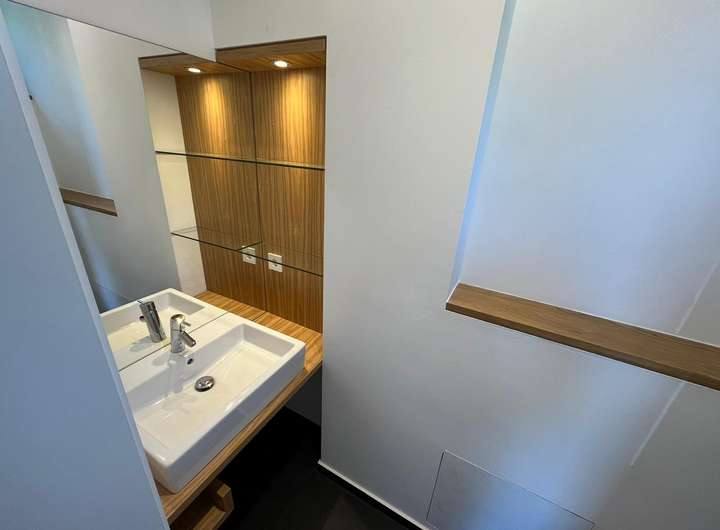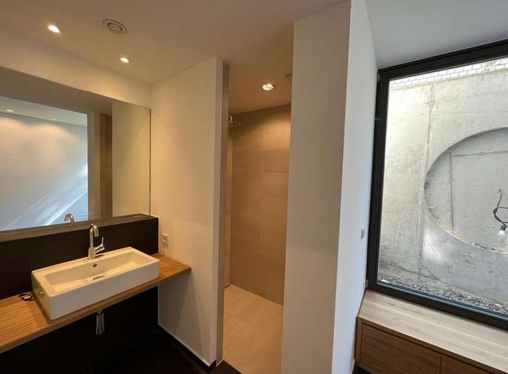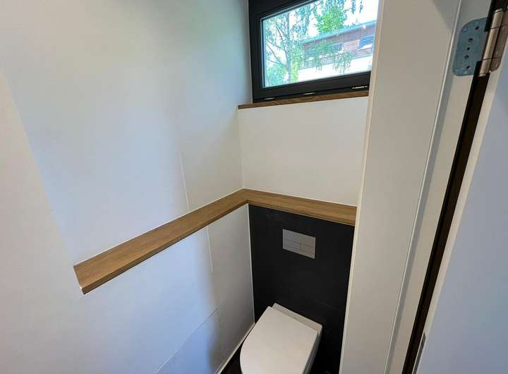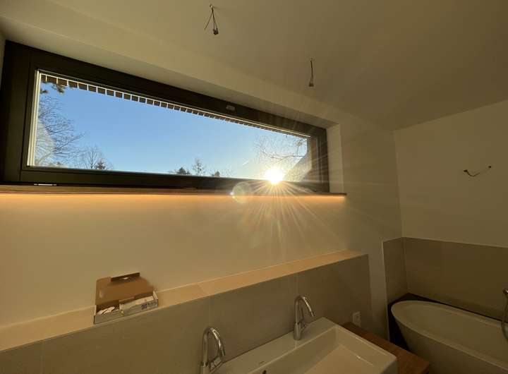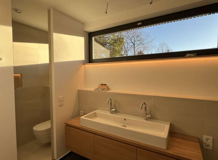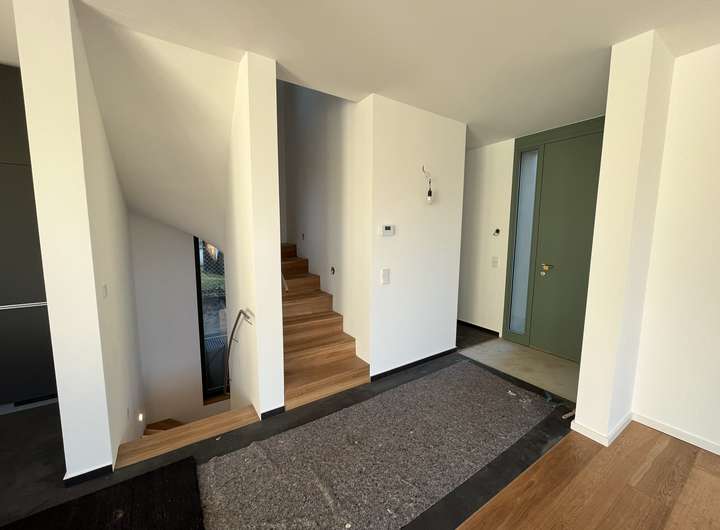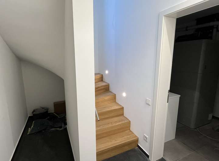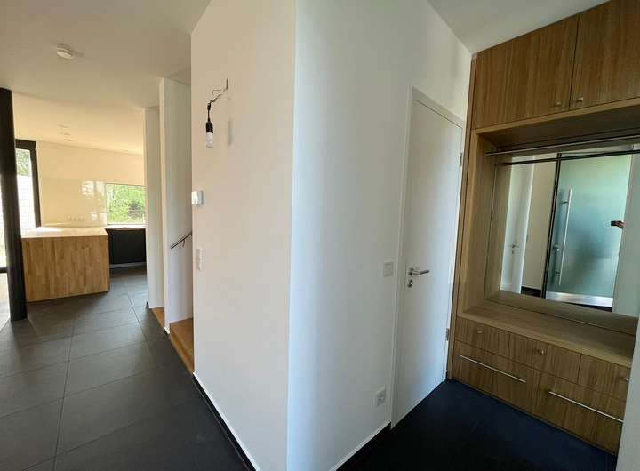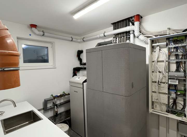 Das lichtdurchflutete Gebäude birgt einige moderne Details in sich. Neben der zeitgemäßen und nachhaltigen Bauweise verfügt es über eine Erdwärmepumpe, einen Wäscheschacht, der jedem Hausmann das Wäschewaschen leichter macht. Die dazugehörige Waschmaschine und der Wäschetrockner sind bereits im Keller in eine praktische Hauswirtschaftszeile eingebaut.