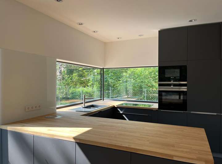 Das Architektenhaus wurde vom lokalen und bekannten Architekten geplant und mit regionalen Unternehmern erbaut. Es besticht durch moderne Architektur und nutzt den Raum ideal aus.