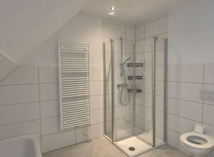 Im Obergeschoss erwarten Sie drei geräumige Schlafzimmer, die viel Platz für individuelle Gestaltungsmöglichkeiten lassen. Das Hauptbadezimmer ist mit einer Badewanne ausgestattet und lädt zu erholsamen Momenten ein. Hochwertiger Designer-Vinylboden in den Wohnräumen sorgt für ein warmes und edles Ambiente, während der Spitzboden wertvollen Stauraum bereithält.