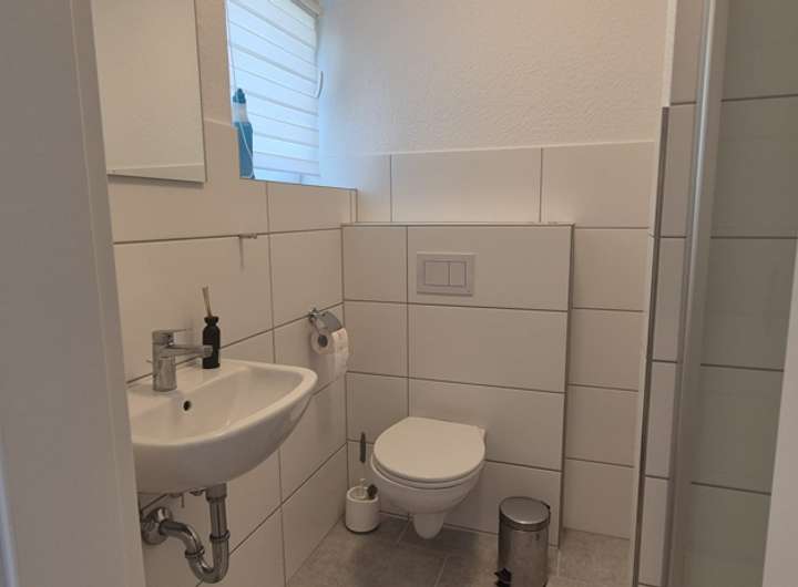 Die intelligente Grundrissgestaltung setzt sich im gesamten Haus fort. Im Erdgeschoss finden Sie neben dem Wohnbereich ein weiteres Zimmer, das sich ideal als Arbeits- oder Gästezimmer anbietet, sowie ein modernes Badezimmer mit ebenerdiger Dusche. Ein praktischer Hauswirtschaftsraum bietet zusätzlichen Komfort.