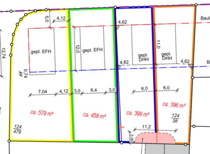Das 579 m² große Eckgrundstück ist bereits veräußert - die restlichen 3 werden somit als Gesamtprojekt verkauft.