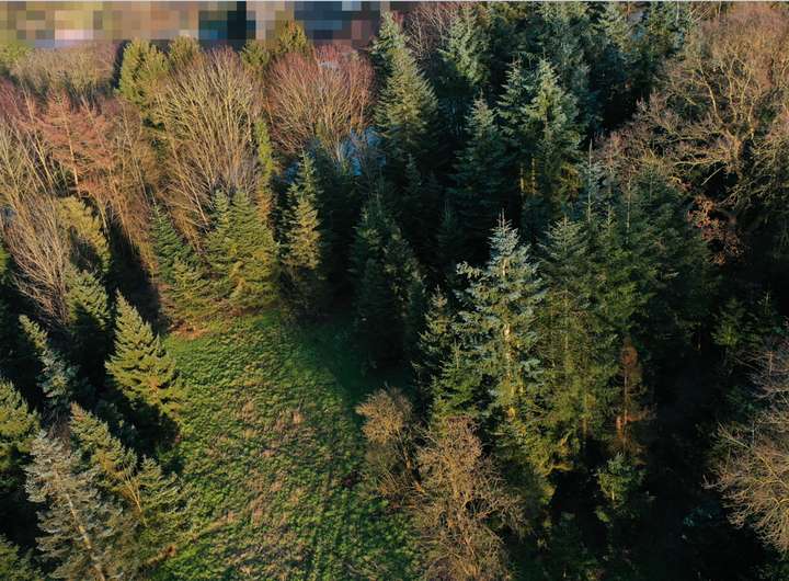 Das Grundstück besteht größtenteils aus Wiese und Gehölz. Das Gehölz ist anteilig recht ausgewogen, bunt durchmischt von Laub- und Nadelbäumen. Auf dem Grundstück befindet sich noch eine sehr kleine Holzhütte, die aber einer Bebauung in keinster Weise entgegenstünde.