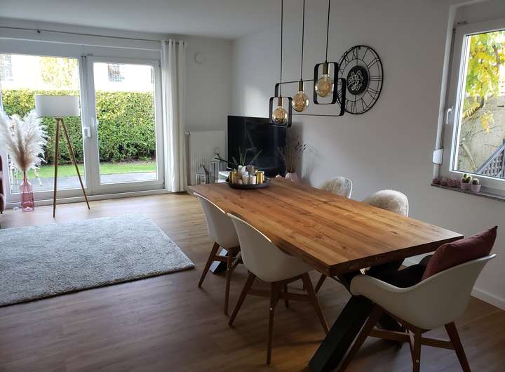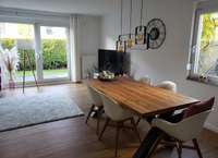 großzügiges, helles Wohnzimmer mit Zugang zu Terrasse und Garten ,