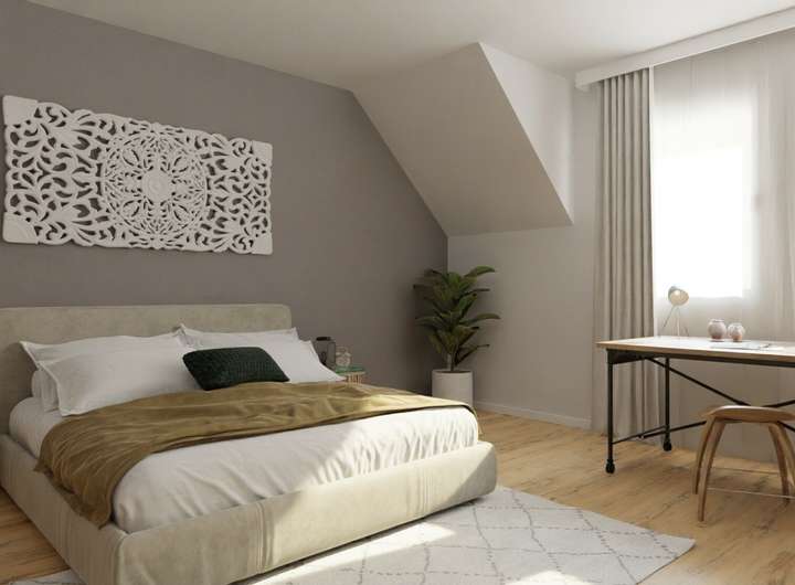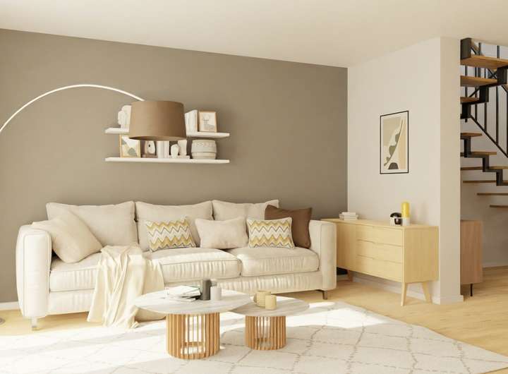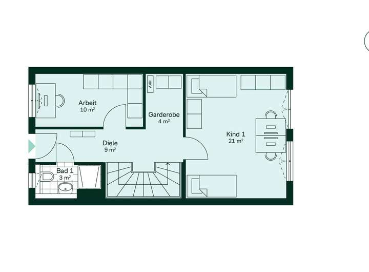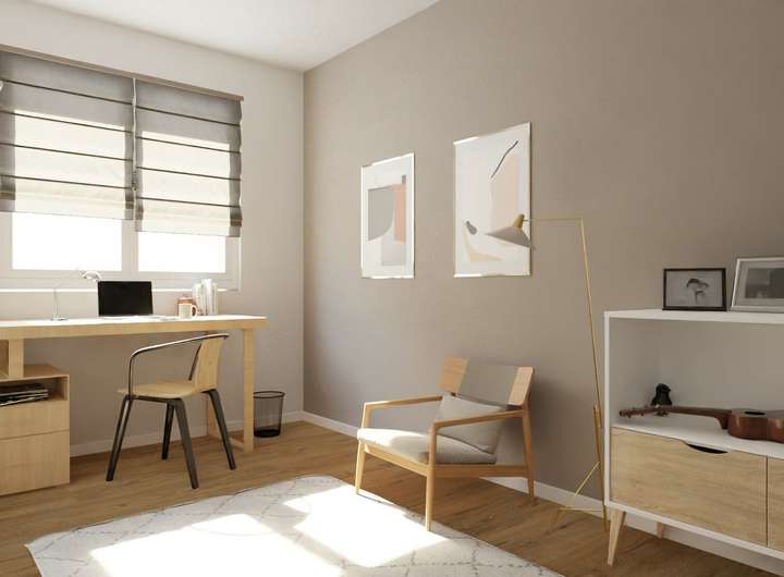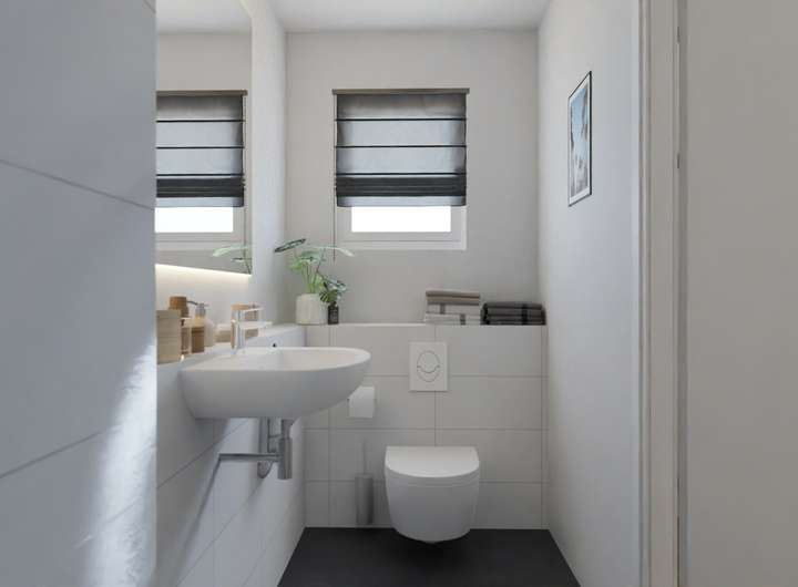 Willkommen in Ihrem neuen Reihenhaus. Im Erdgeschoss erwartet Sie ein gemütliches Arbeitszimmer, ideal für Homeoffice. Die geräumige Diele führt zu einem Kinderzimmer, das viel Platz zum Spielen bietet. Der Wohnbereich im Untergeschoss ist offen gestaltet und lädt zum Entspannen ein. Die moderne Küche ist perfekt für gemeinsame Kochabende. Zwei weitere Schlafzimmer und ein Badezimmer im Obergeschoss bieten Komfort und Rückzugsmöglichkeiten. Abgerundet wird das Haus durch eine praktische Abstellfläche im Dachgeschoss.