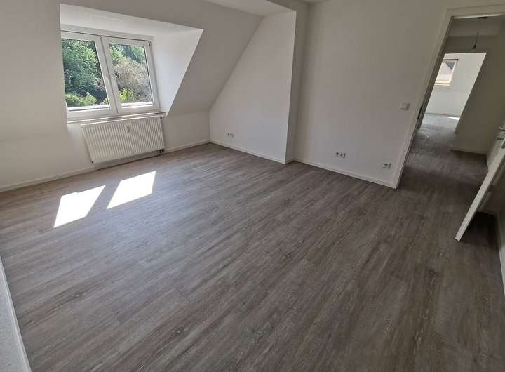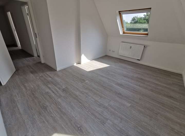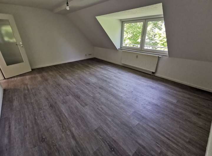 Diese außergewöhnliche Dachgeschoßwohnung ist zum Verlieben. Die hellen und sehr großen Räume lassen Ihren Einrichtungsideen viel Raum. Dieses gemütliche Nest versprüht den besonders reizvollen Charme einer Dachgeschosswohnung, ohne dass Sie sich von vielen Schrägen eingeengt fühlen werden. Jeder einzelne Raum von Küche bis zum Badezimmer ist mit einem Fenster versehen, sodass den gesamten Tag für herrlich viel Tageslicht gesorgt ist. Das Wohnzimmer ist gut zu möblieren und bietet als Mittelpunkt der gesamten Familie Platz. Im Schlafzimmer findet Ihr großer Kleiderschrank seinen rechten Fleck. Abgerundet wird dieses tolle Wohnungsangebot von einem hell gefliestem Wannenbad - natürlich auch hier mit herrlich viel Tageslicht - ein Traum für jeden Morgenmuffel. Die gesamte Wohnung ist bereits mit Raufaser tapeziert und mit einem ansprechenden Bodenbelag versehen. Wir haben Ihr Interesse geweckt? Sprechen Sie uns an. Wir freuen uns auf Sie. Die Grünflächen hinter dem Haus können an schönen Tagen gemeinschaftlich genutzt werden. Die Wohnung eignet sich hervorragend für einen 2-3 Personenhaushalt.