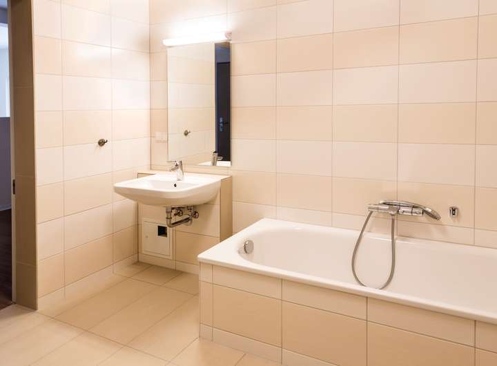 Die Wohnung hat einen pflegeleichten Bodenbelag und verfügt über ein hell gefliestes Bad, Vom Wohn- Esszimmer und Schlafzimmer gelangen sie auf den begehbaren Balkon mit Blicke ins Grüne.