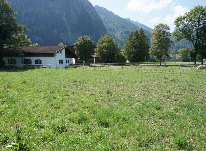 Das Grundstück befindet sich in unmittelbarer Nähe zum Sportzentrum von Oberammergau. In südwestlicher Richtung blicken Sie geradewegs auf das Wahrzeichen des Ortes -den „Kofel“. In ca. 10 Gehminuten läuft man ins Ortszentrum von Oberammergau, wo alle Geschäfte des täglichen Bedarfs, Restaurants, Cafés, kulturelle Einrichtungen, Banken, Apotheken, Ärzte, Supermärkte zu finden sind. Die Schule und der Kindergarten sind in ca. 5 Gehminuten erreichbar. Naturliebhaber und Sportler haben die schönsten und ausgedehntesten Wander- und Radwege sprichwörtlich vor der Türe. Alle Freizeitmöglichkeiten sind vom Grundstück aus leicht und bequem zu erreichen. Sei es im Winter die Skiabfahrten oder Langlaufloipen, im Sommer die Berge zum Wandern und Bergsteigen. Der öffentliche Busverkehr in Richtung Garmisch-Partenkirchen, Linderhof oder Füssen ist ebenfalls leicht in 5 Gehminuten erreichbar. Die Verkehrsanbindung für Autofahrer ist ideal, in 3 Minuten ist man auf der B23, von wo aus man in alle Richtungen aufbrechen kann.