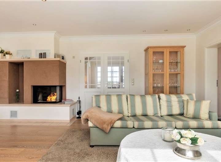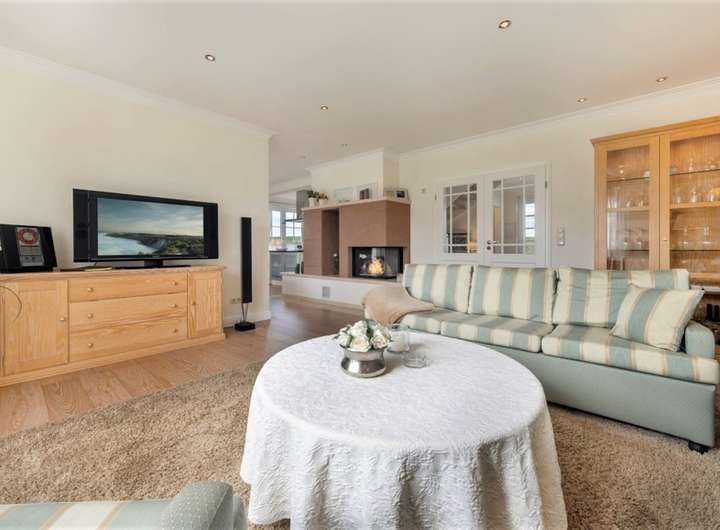 schöne offene Sichtachsen, teileingefriedetes parkähnliches Grundstück, Landhausstil, 2 Terrassen, 4 Fledermausgauben, Kathedralendecke, Kamin, Dampfsauna, große Küche mit Insel