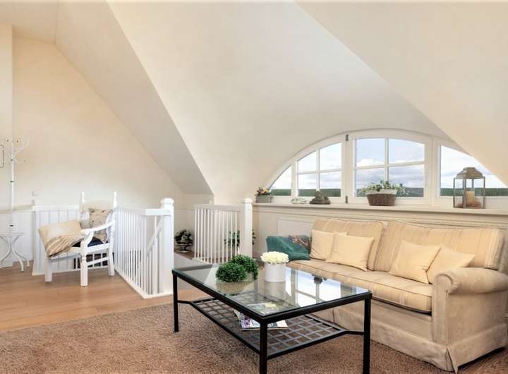 DG mit repräsentativem Aufenthaltsbereich, 2 große Schlafräume, Bad mit Dampfsauna, Doppelwaschtisch, offene Kathedralendecke, Abstellraum