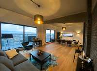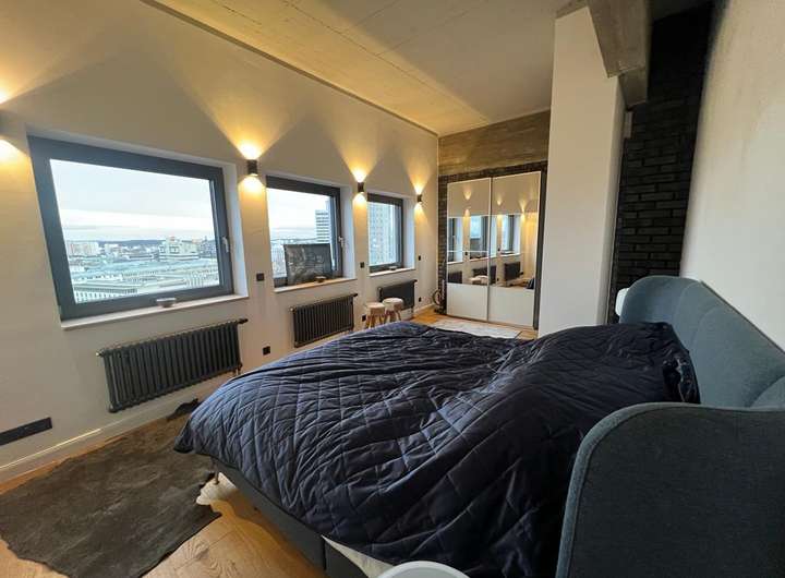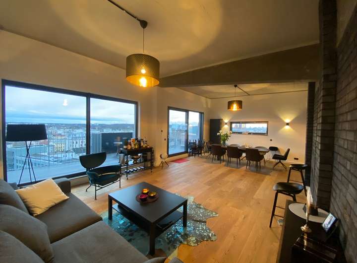 Mit ca. 140 m² Wohnfläche, drei Zimmern und einer großzügigen Terrasse mit spektakulärem Blick auf die Skyline von Frankfurt und Offenbach bietet dieses Penthouse ein einzigartiges Umfeld für kreative Arbeit, repräsentative Geschäftstreffen oder entspanntes Wohnen mit Stil.