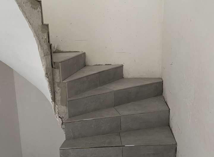 Erdgeschoss, Keller und Treppenhaus gefliest.
