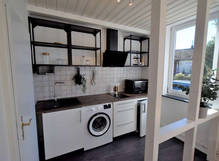 Im Standardpaket der Wohnung ist eine komplett neue Einbauküche inklusive neuer Elektrogeräte wie Kühlschrank, Induktionskochfeld, Umluftdunstabzugshaube, Backofen und Waschmaschine sowie Deckenlampen in allen Räumen enthalten.