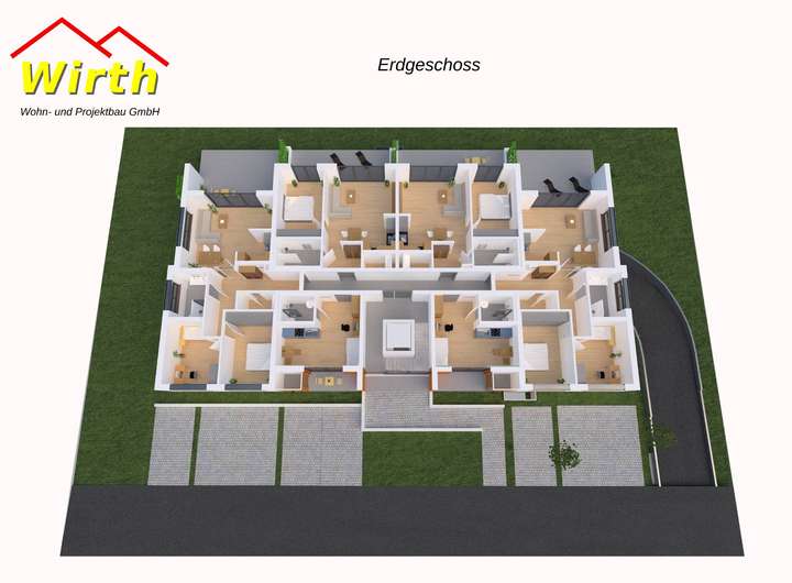Die Wohneinheiten zeichnen sich durch eine durchdachte und sinnvolle Raumaufteilung, sowie einer gehobenen Ausstattung mit Echtholzparkett, Echtglasduschtrennwände und reichhaltiger Elektroausstattung aus. Mit der Planung wurden ausreichend Stellplätze realisiert, so dass für jeder Wohneinheit ein Stellplatz vorhanden ist und bei Bedarf erworben werden kann.