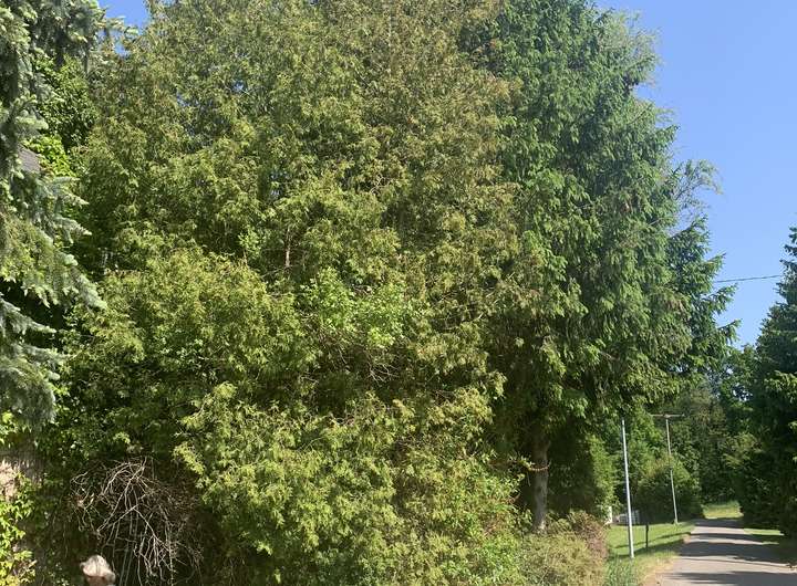 Die vorderen Bäume werden noch gefällt. Das Haus muss jedoch abgerissen werden, dafür ist der Preis angepasst.