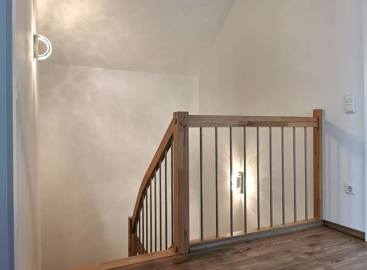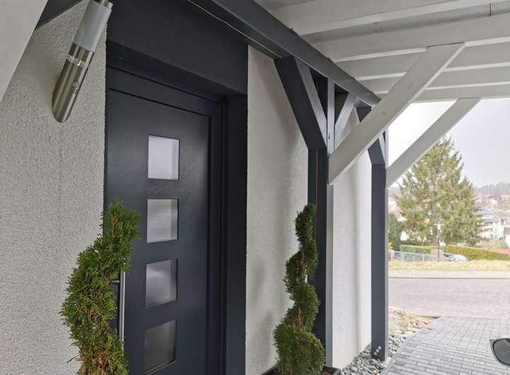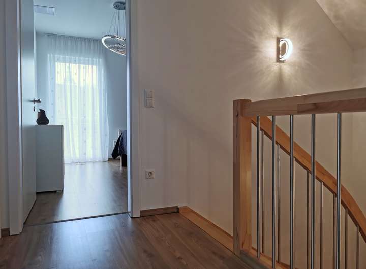 Dieses moderne Neubau - Haus besticht durch seine tolle Ausstattung und die durchdachte Raumaufteilung. Das Erdgeschoss bietet eine großzügige Küche mit modernster Ausstattung, ein gemütliches Wohnzimmer, ein Gäste-WC sowie einen Haustechnikraum. Im Obergeschoss befinden sich 3 helle Schlafzimmer und ein Hauptbad mit bodenebener Dusche. Besonders praktisch ist die Wäscherutsche, die von dem oberen Bad in das untere Badezimmer führt. Ein besonderes Highlight des Hauses ist das innovative Belüftungssystem. Durch das automatische Be- und Entlüftungssystem wird die Raumluftqualität im Haus ständig überwacht und reguliert. Das System sorgt dafür, dass frische Luft zugeführt und verbrauchte Luft abgeführt wird, um ein gesundes Raumklima zu gewährleisten. Dadurch wird auch das Energieeffizienzniveau des Hauses erhöht und die Heizkosten reduziert. Außerdem ist das Haus mit elektrischen Außenrollläden ausgestattet. Auf dem Grundstück befinden sich ein großer Carport für 2 PKW, eine überdachte Terrasse und ein Gartenhäuschen.