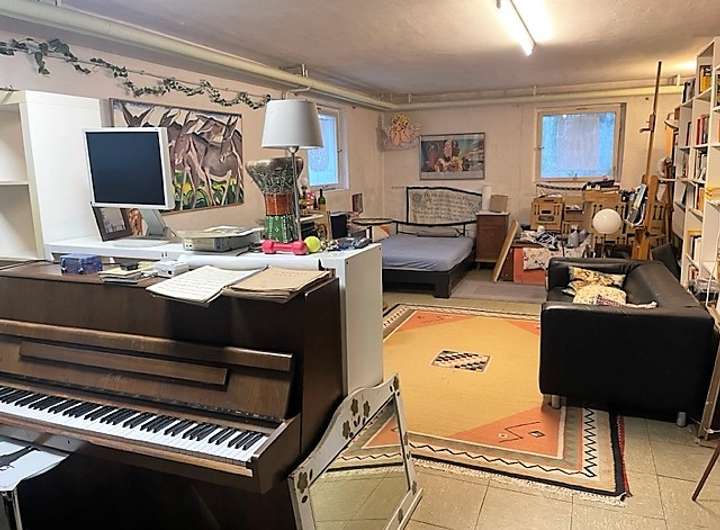 Im Untergeschoss (das Haus ist voll unterkellert) befinden sich neben den diversen Kellerräumen noch ein großzügiger Hobbyraum (ca. 38 m², beheizt) und ein Saunabereich mit Dusche und WC und Treppenaufgang in den Garten.