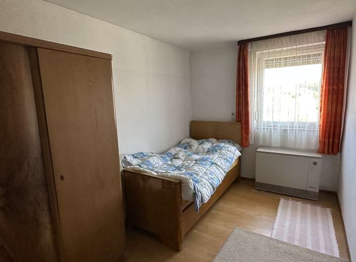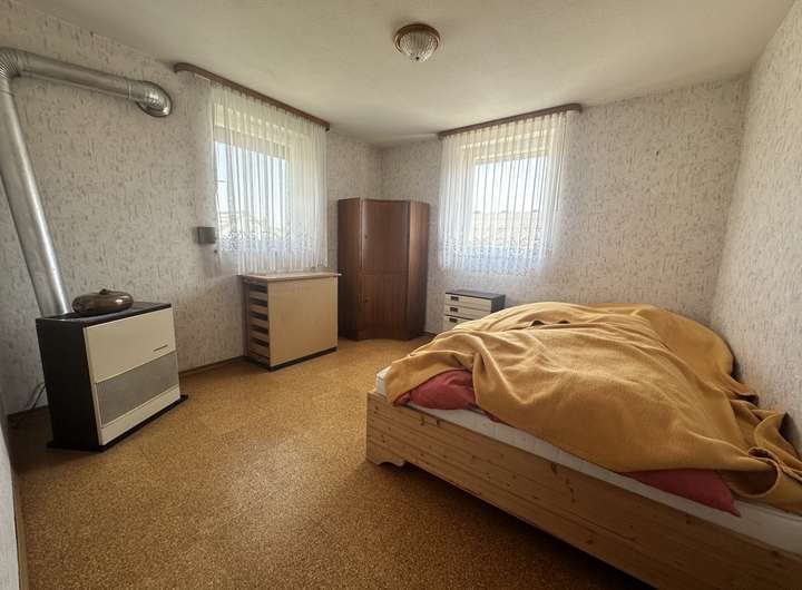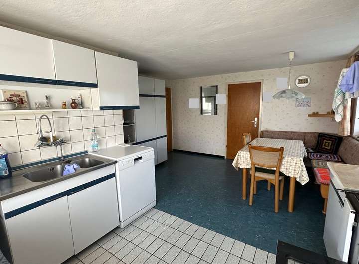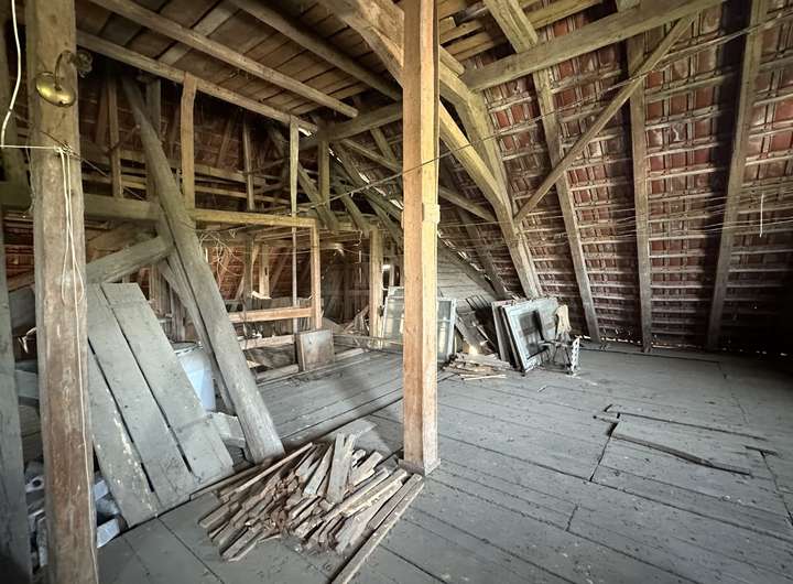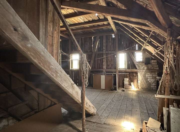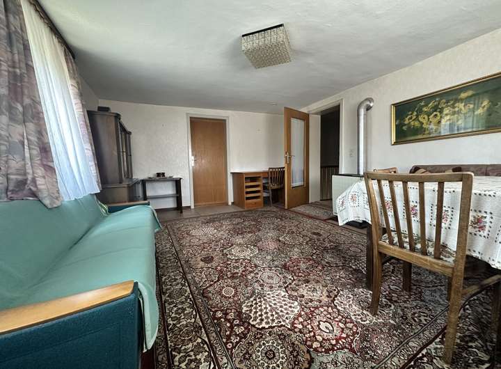 Weiteren, möglichen Wohnraum gibt es noch im Dachstuhl: Hier können Sie selbst Ideen einbringen und den Wohnraum vergrößern. Beheizt wird das Wohnhaus derzeit mit Öleinzelöfen. Zwei Garagen sind im Haus vorhanden. Weitere Abstell- und Nutzungsmöglichkeiten ergeben sich in der Scheune oder auf dem Hof.