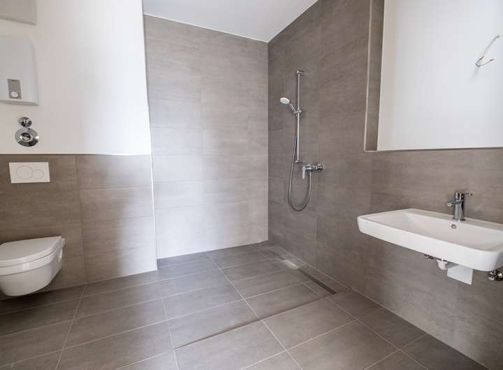 - Bäder und WCs sind mit qualitativ hochwertigen Fliesen verlegt