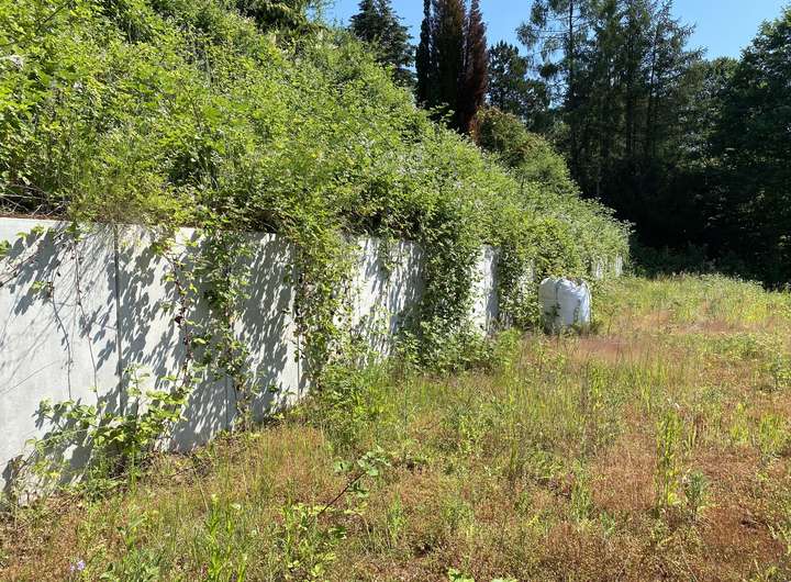 Das große Grundstück wurde von aktuellen Eigentümer aufwändig terrassiert und Stützmauern eingebracht.